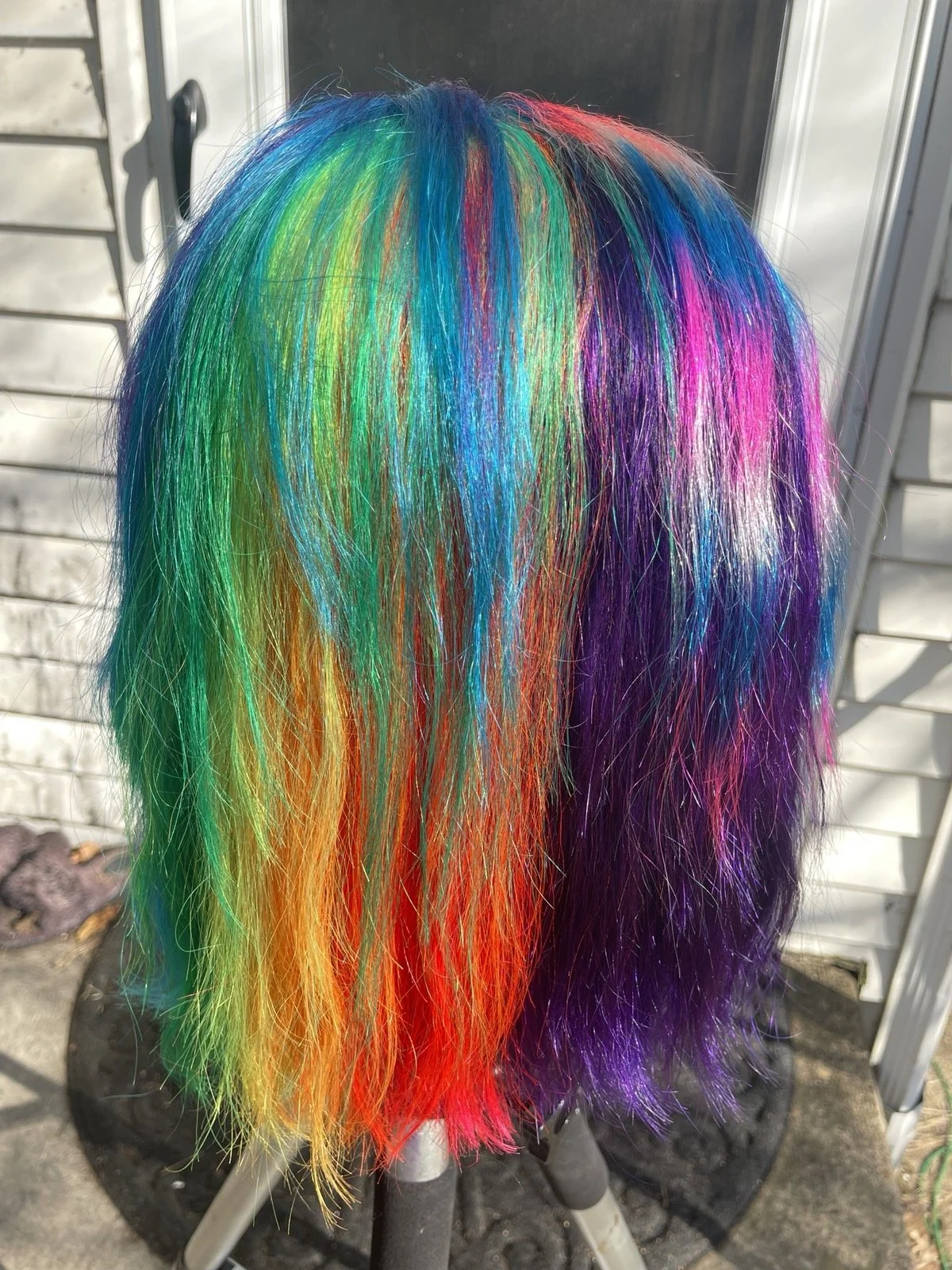I can style both human and synthetic hair. I especially love adding tinsel to hair, sewing wefts, and dying wigs for customization! I am learning other skills right now but would love to do more creative wigs, like adding gemstones to the hair, creating more shapes with hair, etc.